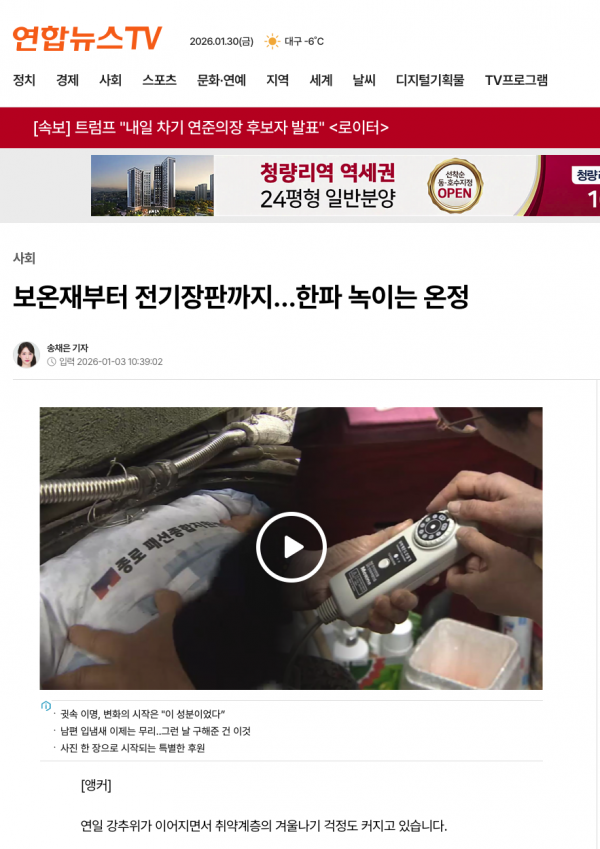 수도계량기 보온재를 제작하여 종로구 거주하시는 취약계층 100가구에게 전달하였습니다.